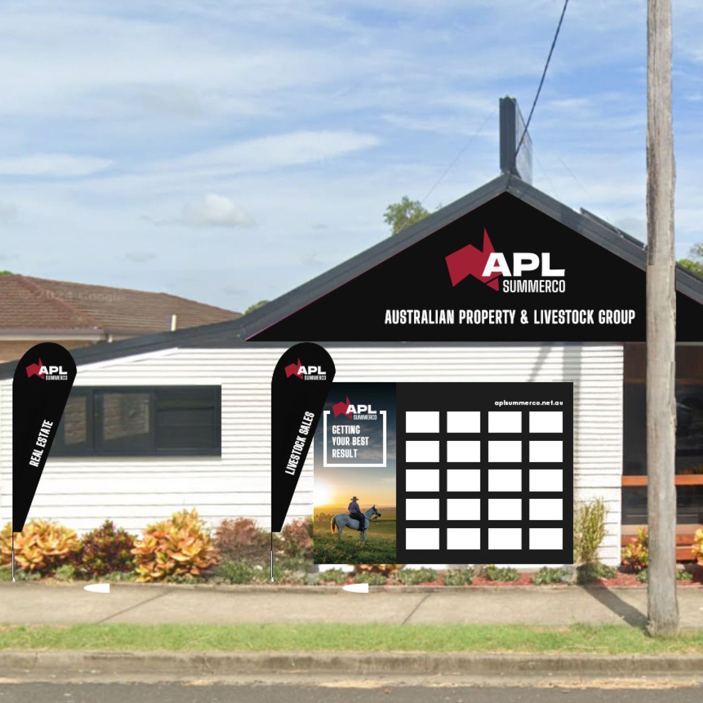 - this brand needed to be adaptable for growth, easily recognisable, and versatile enough to fit everything from property signage in existing business premises, to websites and digital platforms including Real Estate Online and AuctionsPlus.